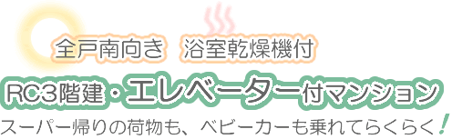全戸南向き 24時間緊急管理 防犯監視カメラ稼働 コンビニ徒歩1分